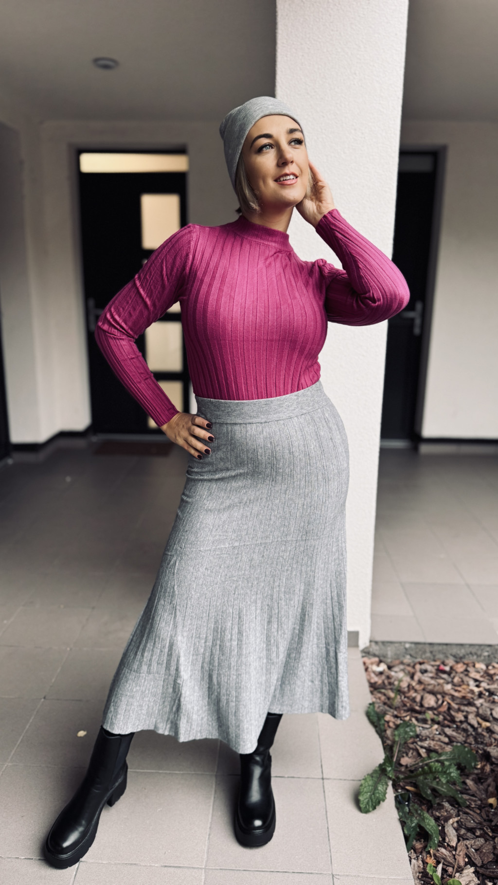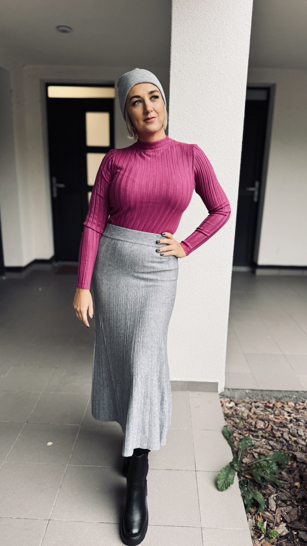 VIA kötött plisszé hatású szoknya - szürke